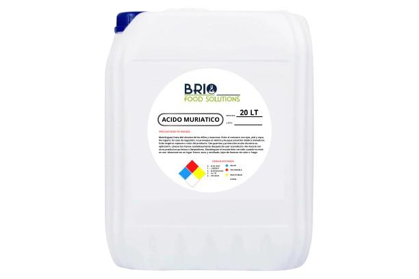 Ácido muriático de alta concentración, ideal para limpieza profunda de superficies como pisos, baños, azulejos y remover sarro o residuos minerales. Presentación de 20 litros.